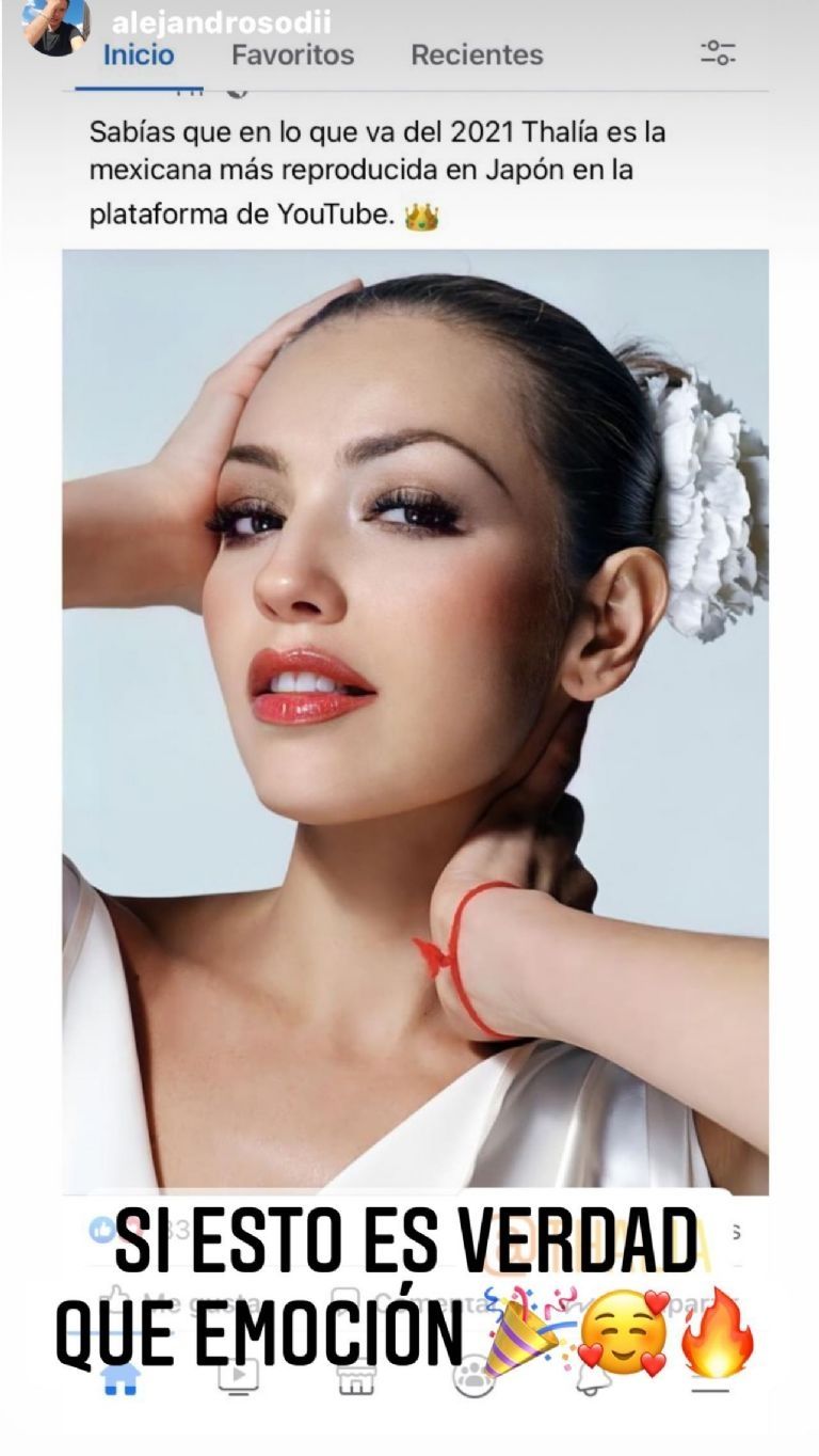 “Si esto es verdad, que emoción" escribió la protagonista de la trilogía de “Las Marías” en sus historias de Instagram arriba de una información que confirmaba el logro de la artista azteca. “Sabías que en lo que va del 2021 Thalía es la mexicana más reproducida en Japón en la plataforma YouTube” predicaba dicho mensaje.