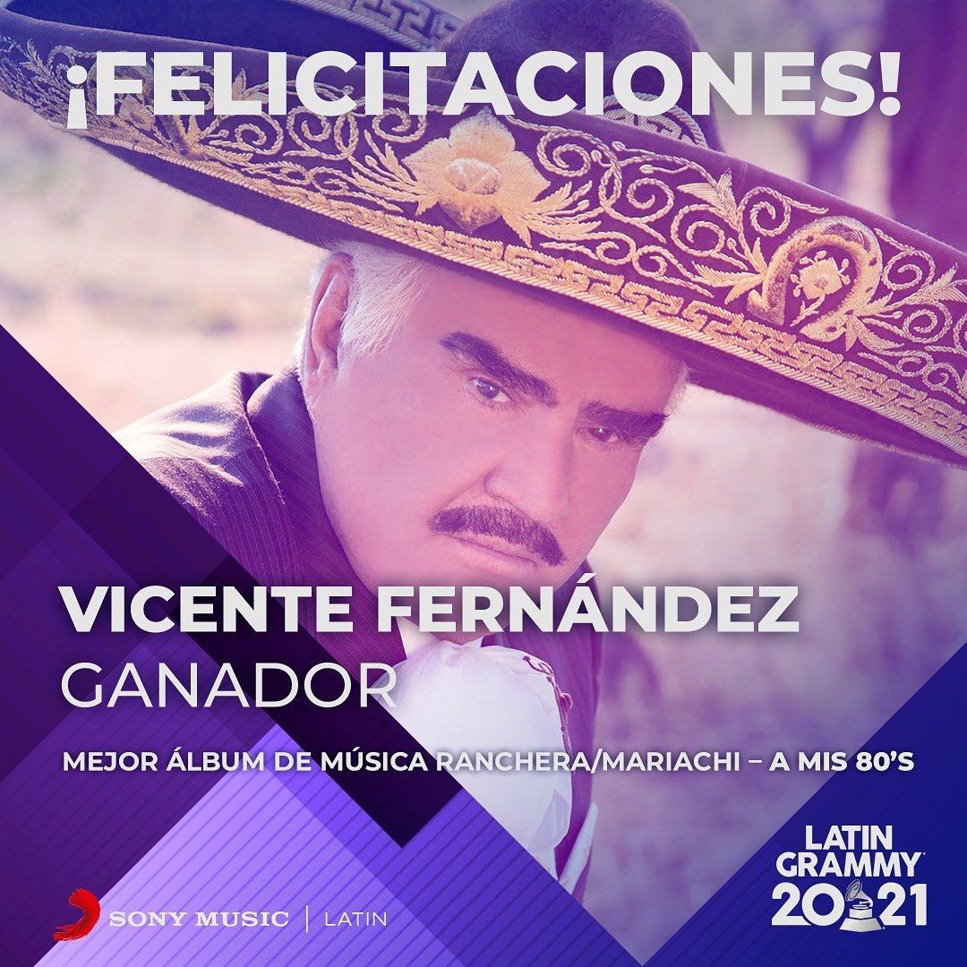 Recordemos que actualmente Vicente Fernández tiene 81 años de edad y está alejado de los escenarios. Sin embargo hace algunas semanas atrás, pese a estar internado por su caída en el mes de agosto, fue ganador de un Latin Grammy 2021. Esto fue por triunfar en la categoría Mejor Álbum de Música Ranchera Mariachi - A Mis 80`S.