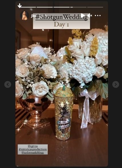 Finalmente hace algunas horas atrás, está circulando una imagen de la actual pareja de Alex Rodríguez vestida con un traje de novia que cautivó a millones de personas en las redes. Dicha fotografía fue compartida, por la propia JLo, en una de sus historias de Instagram donde además agregó el siguiente mensaje: "Here we go #Shotgun Wedding".