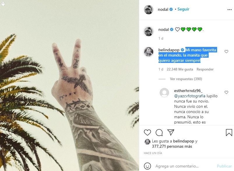 Además como mencionamos anteriormente Christian a dichos estados le agregó el siguiente comentario: "Los mejores desayunos de mi vida son con la mejor chef. Te amo Belinda". En tanto que hace un día el famoso cantautor compartió una imagen de su mano a lo que bella rubia le comentó: "Mi mano favorita en el mundo, la manita que quiero agarrar siempre!"
