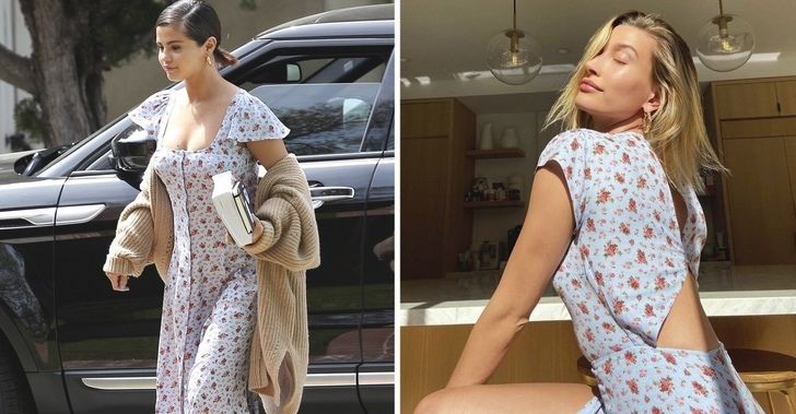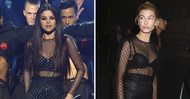 1. La primera imagen se remonta al año 2015 cuando Selena Gomez vistió este espectacular look en los American Music Awards. En tanto que un par de años más tarde, en 2017, durante la semana de la moda en París, Hailey usó uno demasiado similar.