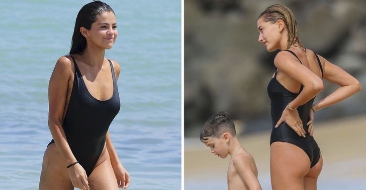2. Por su parte, en una de sus vacaciones, la intérprete de la canción "Baila conmigo" vistió un enterizo de color negro que unos años más tarde fue adoptado por la esposa Justin que se destaca por su gran parecido.