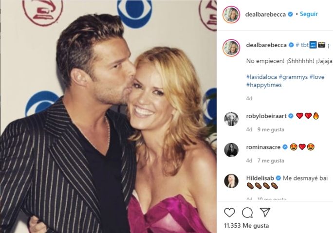 “¡No empiecen! ¡Shhhhhh! Jajaja” fue lo que escribió textual Rebecca de Alba junto a la foto con Ricky Martin. En pocos minutos el posteo ya contaba con más de 11 mil Likes y superaba los 500 comentarios, en segundos.