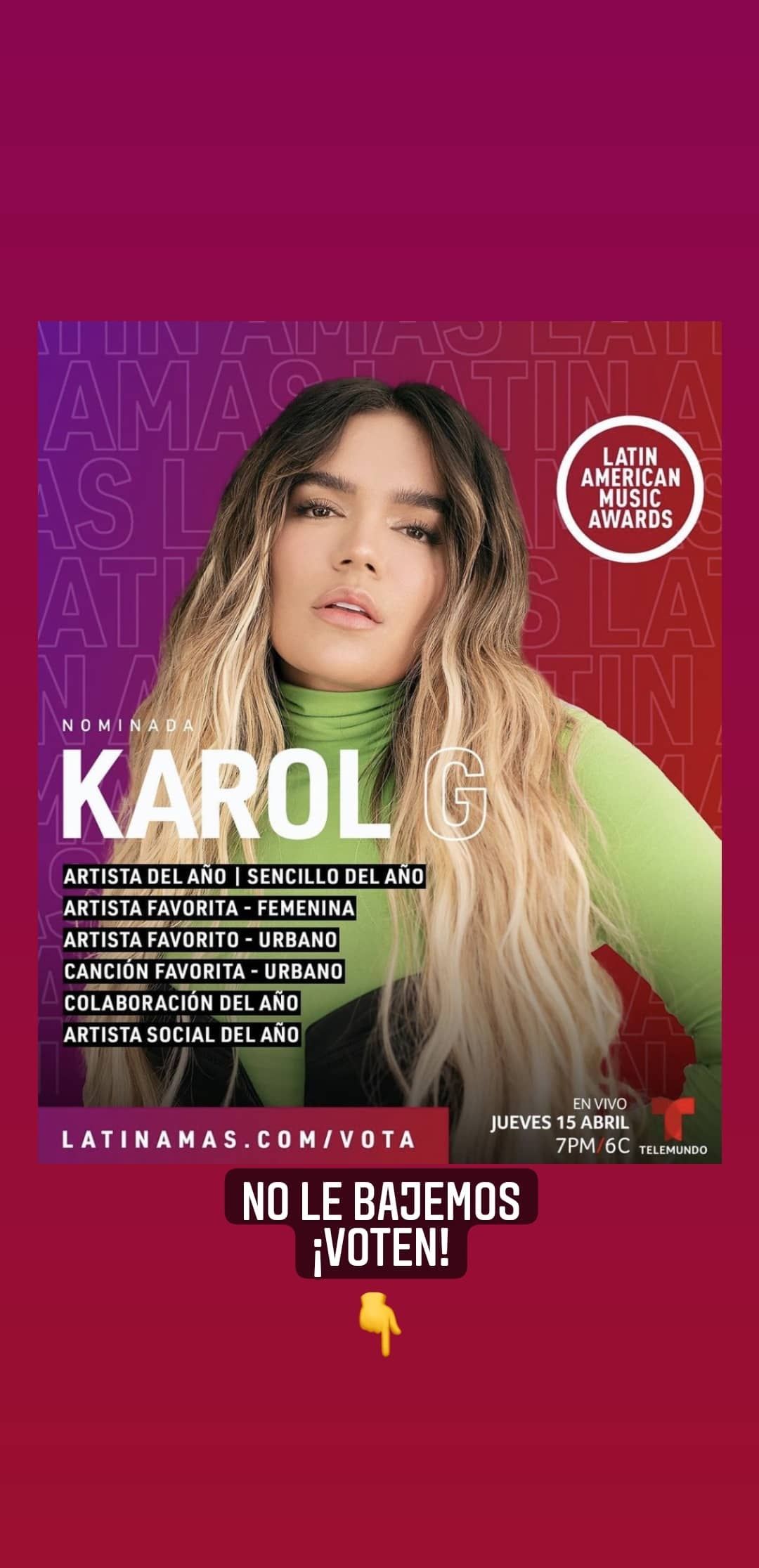 Por otra parte, la semana pasada se conocieron los nominados para los Latin American Music Awards, en donde Karol G y J Balvin son los que más nominaciones tienen con 9 cada uno. La ceremonia de premiación se entregará el próximo 15 de abril y sin dudas estos exitosos colombianos serán los favoritos para quedarse con varios galardones.