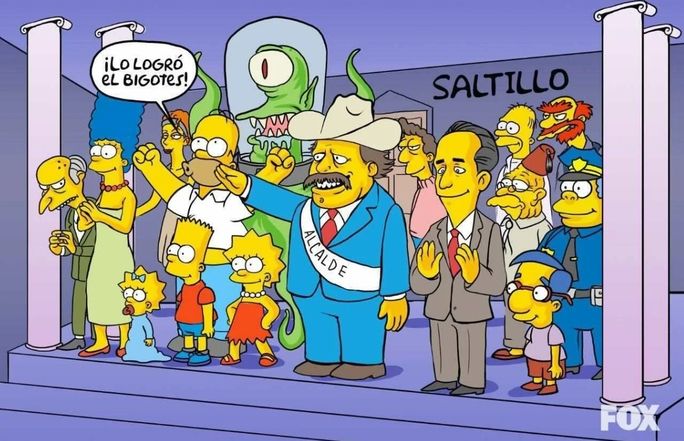 Los Simpson son populares también por predecir acontecimientos que nadie podría imaginar excepto para sus guionistas. La fama que tienen por sus predicciones alcanzaron a México y muchos usuarios lo usaron para crear una escena: el empresario minero Armando Guadiana podría llegar a ser alcalde de Saltillo, en Zaragoza, por Morena.