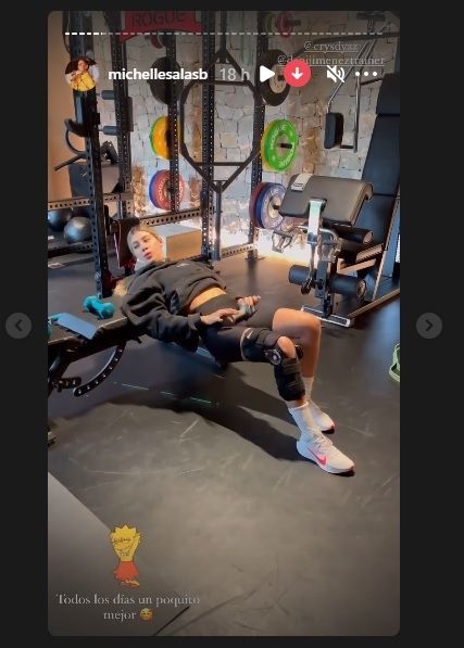 Asimismo realizó una serie de historias en su cuenta de Instagram donde enseñó su exhaustiva rutina de ejercicios. Además en los mismos se puede ver como la bellísima rubia está tonificando la zona de su rodilla para poder recuperarse cuanto antes de la mencionada lesión de su pierna derecha.