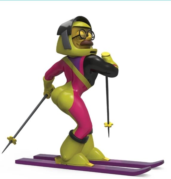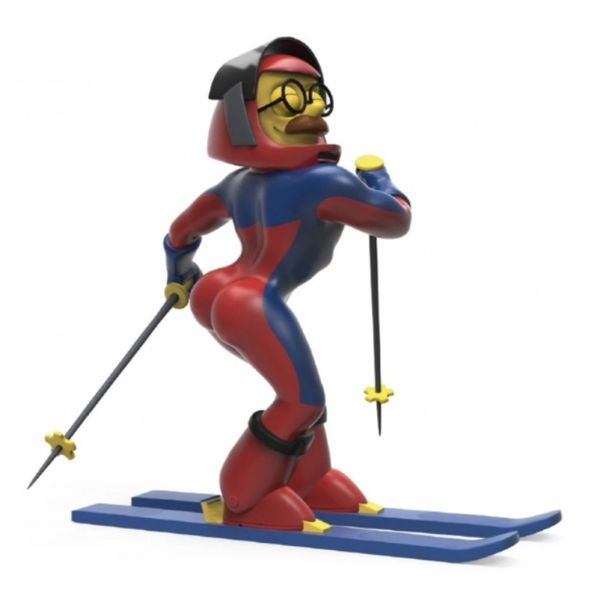 Ahora los fanáticos podrán disfrutar de este momento de la serie en la estantería de sus casas: Kidrobot realizó una colección de arte de vinilo y entre las piezas premium se encuentra Ned con su traje de esquí rojo y azul, cuando le muestra el trasero a Homero.