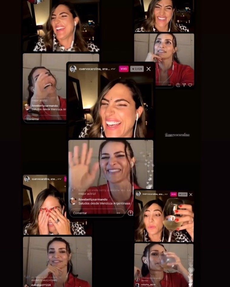 Sin embargo en esta oportunidad, recientemente, la talentosa actriz, compartió en la mencionada red social una captura de un vivo que realizó con la artista Carolina Cuervo Navia. Además a dicha imagen le agregó la siguiente descripción: "Gracias mi @cuervocarolina por este live tan amoroso y divertido. Qué buena conversa! Y gracias infinitas a tod@s los que se conectaron, GRACIAS por sus mensajes y comentarios hermosos, con tanto respeto. ♥️".