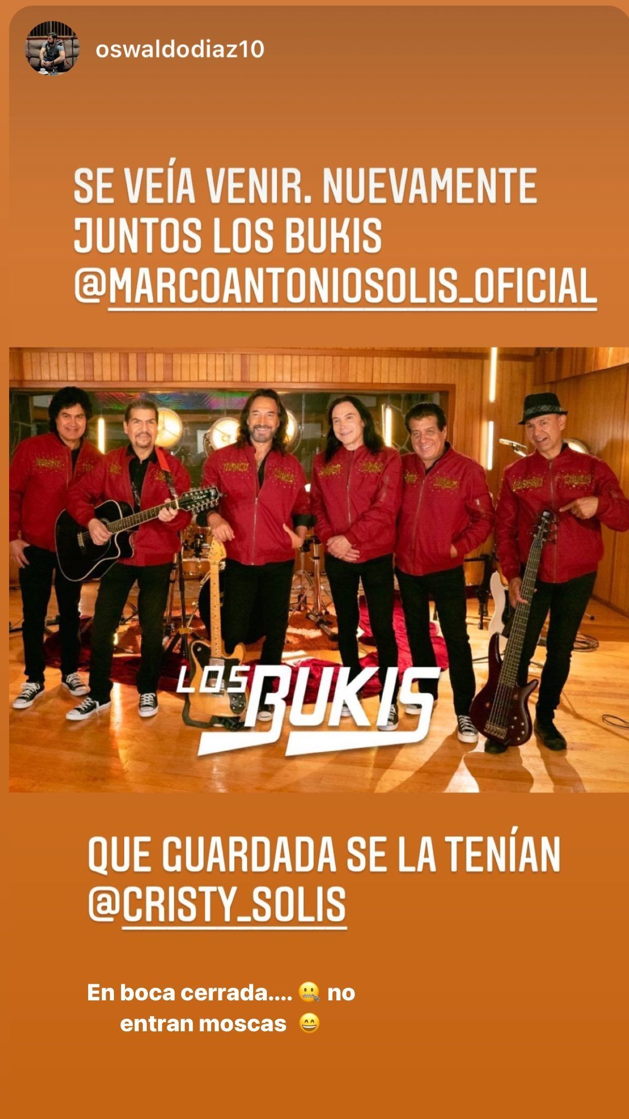 Esta gran aparición fue un secreto que, el famoso cantautor azteca, mantenía en secreto bajo siete llaves. Ese momento fue muy emocionante tanto para los integrantes de la banda que volvían a juntarse arriba de un escenario como así también para miles de sus seguidores que recordaron sus más conocidas canciones. Por su parte, Alison hija de Solís, afirmó que: "Un sueño hecho realidad para mi papi! Por siempre Su majestad Los Bukis @somoslosbukis".