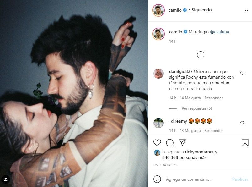 La fotografía fue publicada por el intérprete de la canción "Ropa cara" hace algunas horas atrás. En dicha imagen se los puede ver frente a frente, punto de besarse. Además en mencionada foto se puede ver el gran amor que se tienen en el uno para el otro. En tanto que en la descripción de la misma Camilo escribió: "Mi refugio @evaluna". Por su parte la hija de Ricardo Montaner la compartió el posteo en uno de sus estados de Instagram.