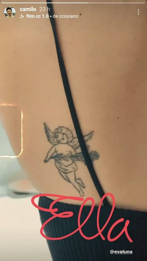 La fotografía fue publicada por el intérprete de la canción "Ropa cara" hace algunas horas atrás a través de uno de sus estados de su cuenta oficial de Instagram. Allí se puede ver el dibujo de un angelito en la espalda la de la hija de Ricardo Montaner. En tanto que a esta fotografía, Camilo, le agregó el comentario de: "Ella".