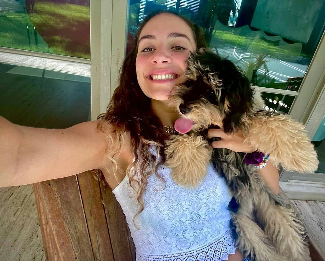 Esta vez no fue la excepción ya que en su cuenta de Instagram cautivó a sus seguidores con una foto en su perfil. En su feed se la puede ver abrazando a su perro con una gran sonrisa. Además a dicha imagen le agregó el siguiente comentario: "I swear she’s happy (or at least I hope)" Te juro que está feliz (o al menos eso espero). Esto claramente cuasó la reacción de sus familiares como así también de miles de sus fans.