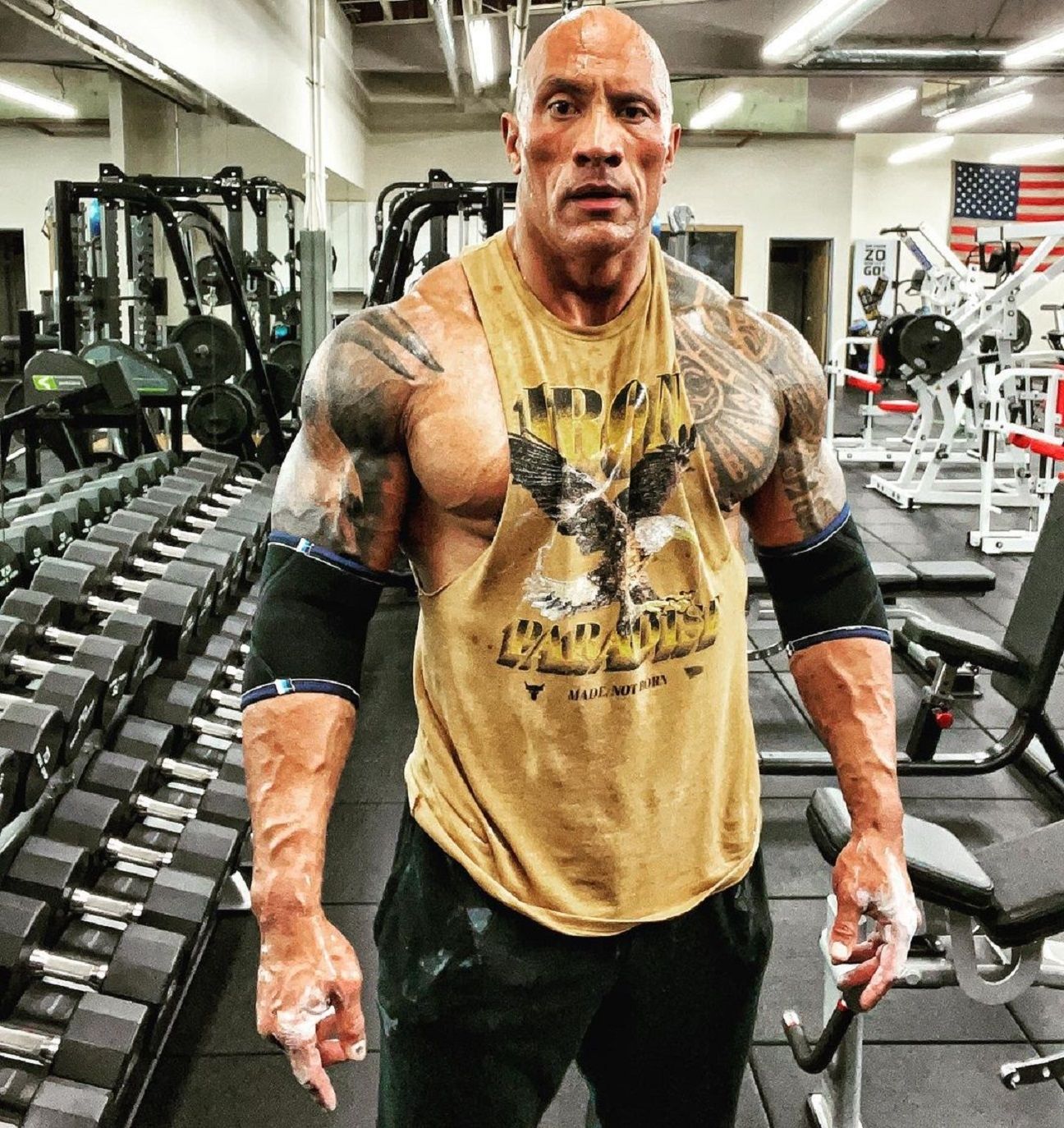 The Rock se encuentra entrenando de una manera muy intensa para interpretar al antihéroe de los cómics Black Adam. En sus redes sociales, principalmente Instagram, comparte las rutinas desde el gimnasio de su casa, al que llama "Iron Paradise" y de fondo siempre se escucha música muy activa.