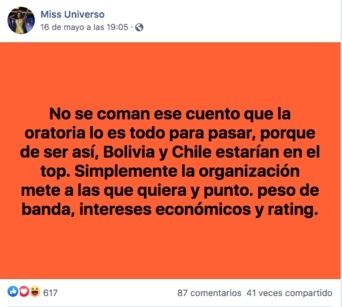 Por otra parte, señalan a Andrea Meza como “Miss Telemundo“, y varios indican que la que mejor respondió y tenía más cualidades era en realidad Miss Perú.