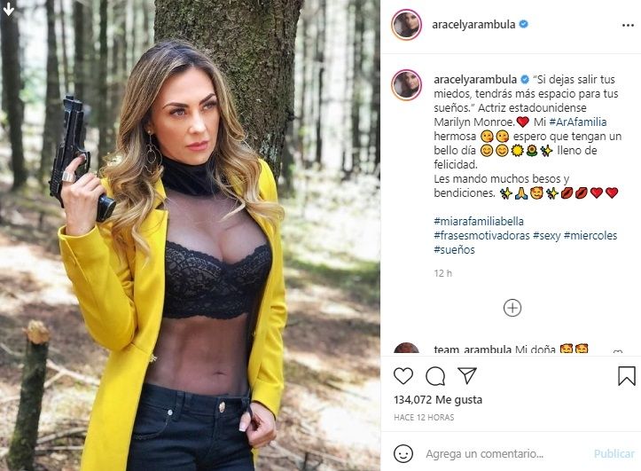 Finalmente, hace algunas horas atrás, en su perfil de su cuenta oficial de Instagram, Aracely Arámbula, compartió una imagen de ella que subió la temperatura a las redes sociales ya que con la misma demostró lo hermosa que está a sus 46 años de edad. Además a dicha imagen le agregó el siguiente mensaje: "Si dejas salir tus miedos, tendrás más espacio para tus sueños.” Actriz estadounidense Marilyn Monroe.❤️ Mi #ArAfamilia hermosa espero que tengan un bello día ☀️✨ lleno de felicidad. Les mando muchos besos y bendiciones. ✨✨❤️❤️".