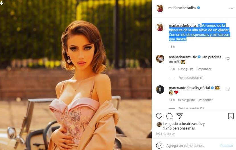 Marla es la hija menor del famoso cantante Marco Antonio Solís y de la modelo cubana Cristian Salas. Además ella tiene una hermana llamada Alison con la que en varias ocasiones comparte producciones de fotos para diversas marcas de moda como así también de belleza. Sin embargo en esta ocasión ella misma compartió una foto en su perfil de su cuenta de Instagram que enamoró a todos con su gran belleza.