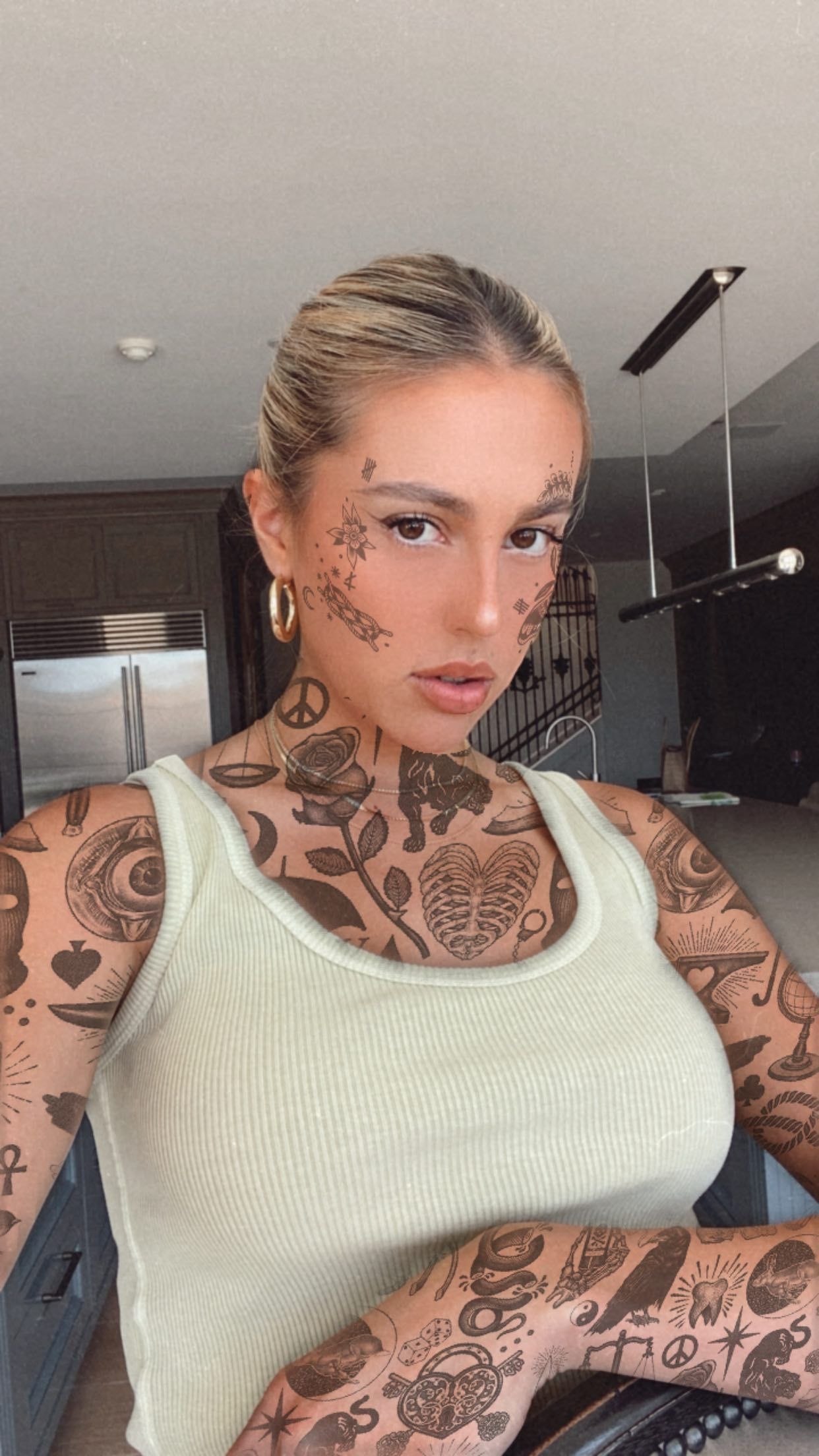 En tanto que, hace algunas horas atrás, Sophia, la hija mayor de protagonista de la película "Rocky" compartió en una de sus historias de su cuenta oficial de Instagram una imagen de ella que dejó a todos sus seguidores con la boca abierta. Ya que en la misma aparece completamente tatuada. Asimismo y para la tranquilidad de sus fans esto fue nada menos que un filtro de la mencionada red social que le provocó dicha apariencia.