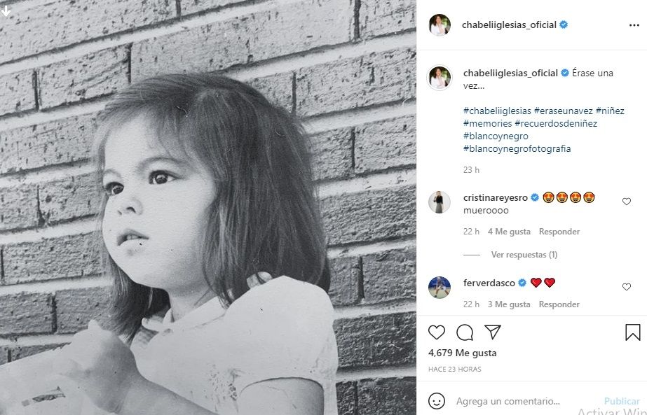 Un claro ejemplo de ello es el posteo que realizó la hija de Julio Iglesias hace algunas horas atrás donde compartió una imagen de ella de cuando era niña por lo que acaparó las miradas de todos sus seguidores. Además ha mencionada fotografía Chábeli le agregó la siguiente frase: "Érase una vez #chabeliiglesias #eraseunavez #niñez #memories #recuerdosdeniñez #blancoynegro #blancoynegrofotografia".