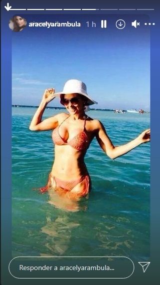 Cambiando de tema, hace algunas horas atrás, en su perfil de su cuenta oficial de Instagram, Aracely Arámbula, compartió una foto de ella donde se la ve presumiendo su espectacular figura a sus 46 años de edad. En la misma se la puede ver luciendo un bikini dentro del mar. Claramente esta imagen acaparó las miradas de miles de sus fanáticos.