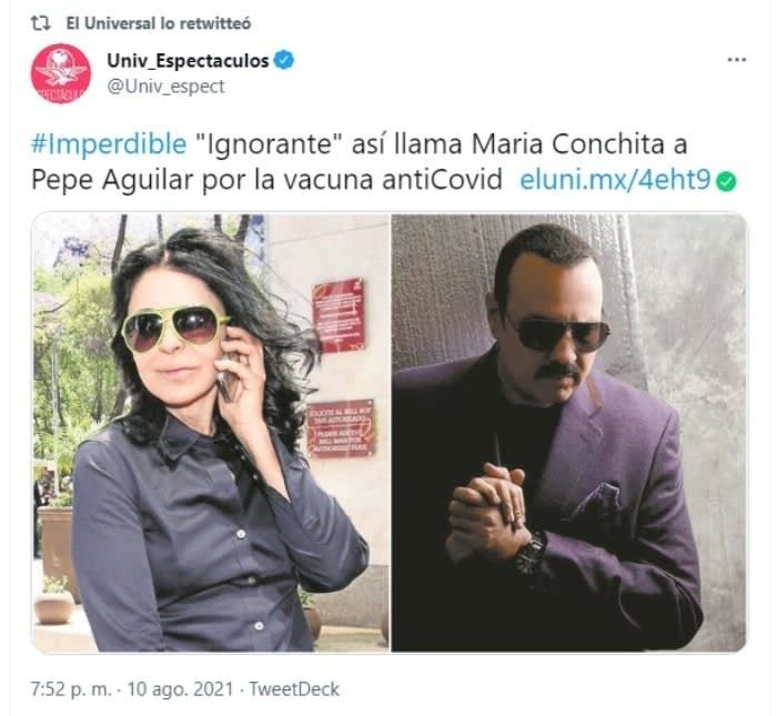 Una vez más, Pepe Aguilar no deja de estar en el ojo de la tormenta. Esta vez fue la cantautora y actriz venezolana María Conchita Alonso que arremetió contra el cantante y lo hizo durante una entrevista para el programa “Suelta la Sopa”.