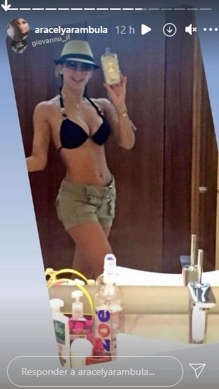 Cambiando de tema, hace algunas horas atrás, en sus historias de su cuenta oficial de Instagram, Aracely Arámbula, compartió un video de ella que acaparó las miradas de todos. En el mismo se puede ver a la popular rubia, lucir un bikini negro y un minishort frente al espejo que no solo confirmó su gran belleza si no también su espectacular figura.