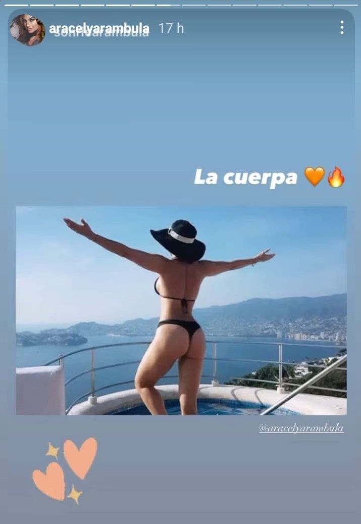 Cambiando de tema, hace algunas horas atrás, en sus historias de su cuenta oficial de Instagram, Aracely Arámbula, compartió una foto de ella que dejó a sus seguidores sin palabras. En la misma se la puede ver, de espalda, luciendo un bikini de color negro que confirmó la estupenda figura que posee a sus 46 años.