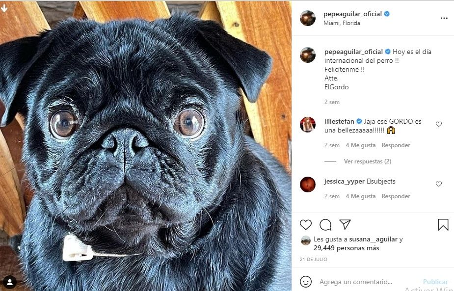 Si hay algo que comparten los integrantes es el amor por las mascotas, puntualmente por su perro. Su nombre es "El Gordo" y es, en varias ocasiones, el protagonista de las publicaciones de la familia Aguilar. Uno claro ejemplo de ello es uno posteo que realizó Pepe Aguilar para el día del perro. En dicha publicación escribió el siguiente mensaje: "Hoy es el día internacional del perro!!