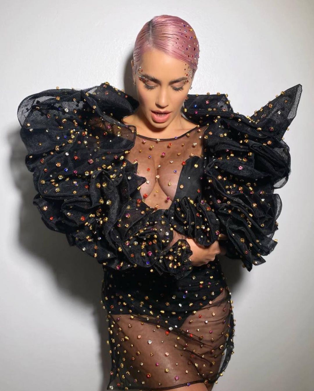 Sin embargo, en esta ocasión es tendencia en diversos portales de noticias de espectáculos al compartir en sus redes una serie de fotos de ella luciendo un vestido de tonos negros que se caracterizó por tener transparencias y piedras. En las mismas se la puede ver lo bella que está actualmente a un mes de cumplir 30 años de edad.