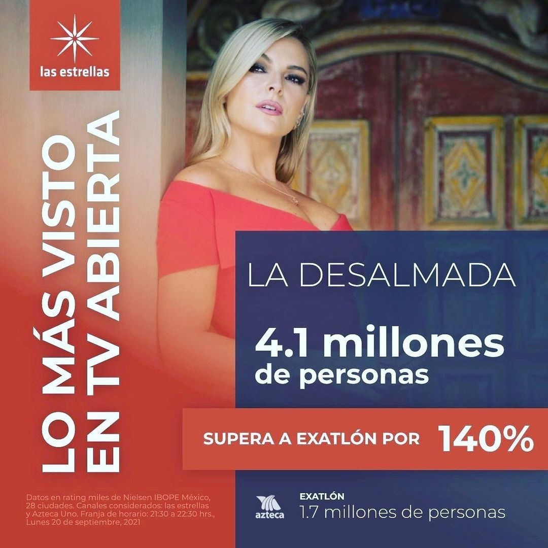 Sin embargo, en esta ocasión, la peculiar rubia es tendencia en diversos portales de noticias del espectáculos ya que compartió un información sobre la telenovela La Desalmada que dejó a todos sus seguidores sorprendidos. Es que la famosa tira mexicana pertenece al canal "Las Estrellas". En el dicha publicación Marjorie afirmó que la mencionada telenovela superó por un 140% a Exatlón México. Llegando así a tener 4.1 millones de televidentes. Con este dato demostró que es lo más visto en la TV abierta.
