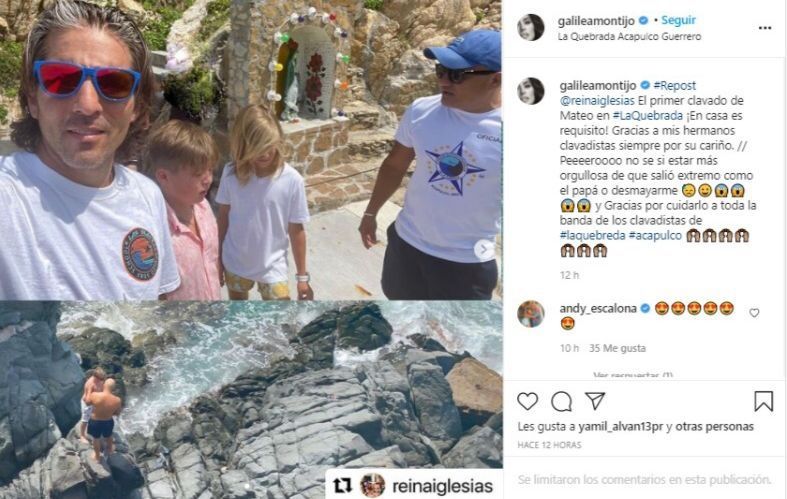 “Peeeeroooo no se si estar más orgullosa de que salió extremo como el papá o desmayarme ???????????? y Gracias por cuidarlo a toda la banda de los clavadistas de #laquebreda #acapulco”.