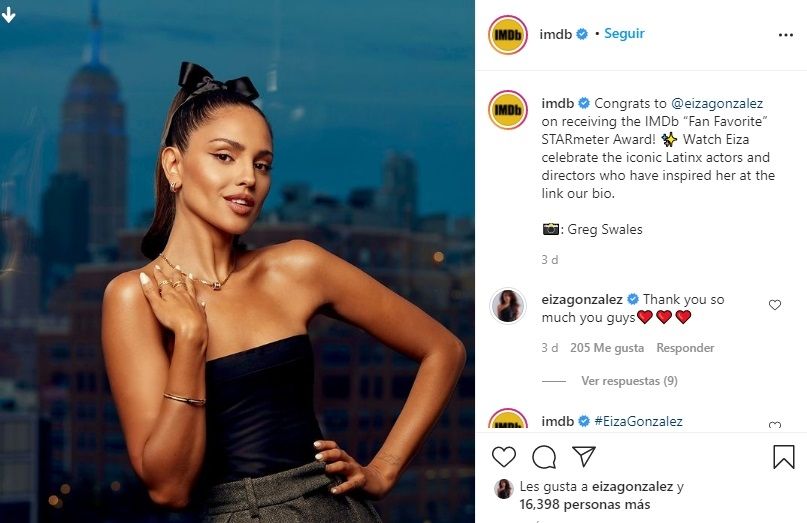 Asimismo y como adelantamos en el comienzo de la nota, Eiza González, confirmó una vez más por qué es una de las mujeres más hermosas del mundo. Es que en su perfil de su cuenta oficial de Instagram compartió una imagen de ella donde se ve lo bella que luce actualmente. Además con este posteo dejó en claro la gran popularidad que posee ya que IMDb la premió como Fan Favorite Award.