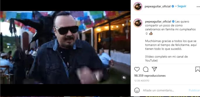 Cuando recordamos el increíble regalo que recibió Pepe Aguilar en su cumpleaños se debe a un video de más de 2 minutos y medio, donde personalidades del mundo artístico como Calibre 50, José Luis del grupo Río Roma, Poncho Lizárraga, Margarita “La Diosa de la cumbia”, Ana Bárbara, Los dos Carnales, Melissa de Matisse, Mario Domm y Ana Bárbara, entre muchos otros más le enviaron mensajes muy cálidos.