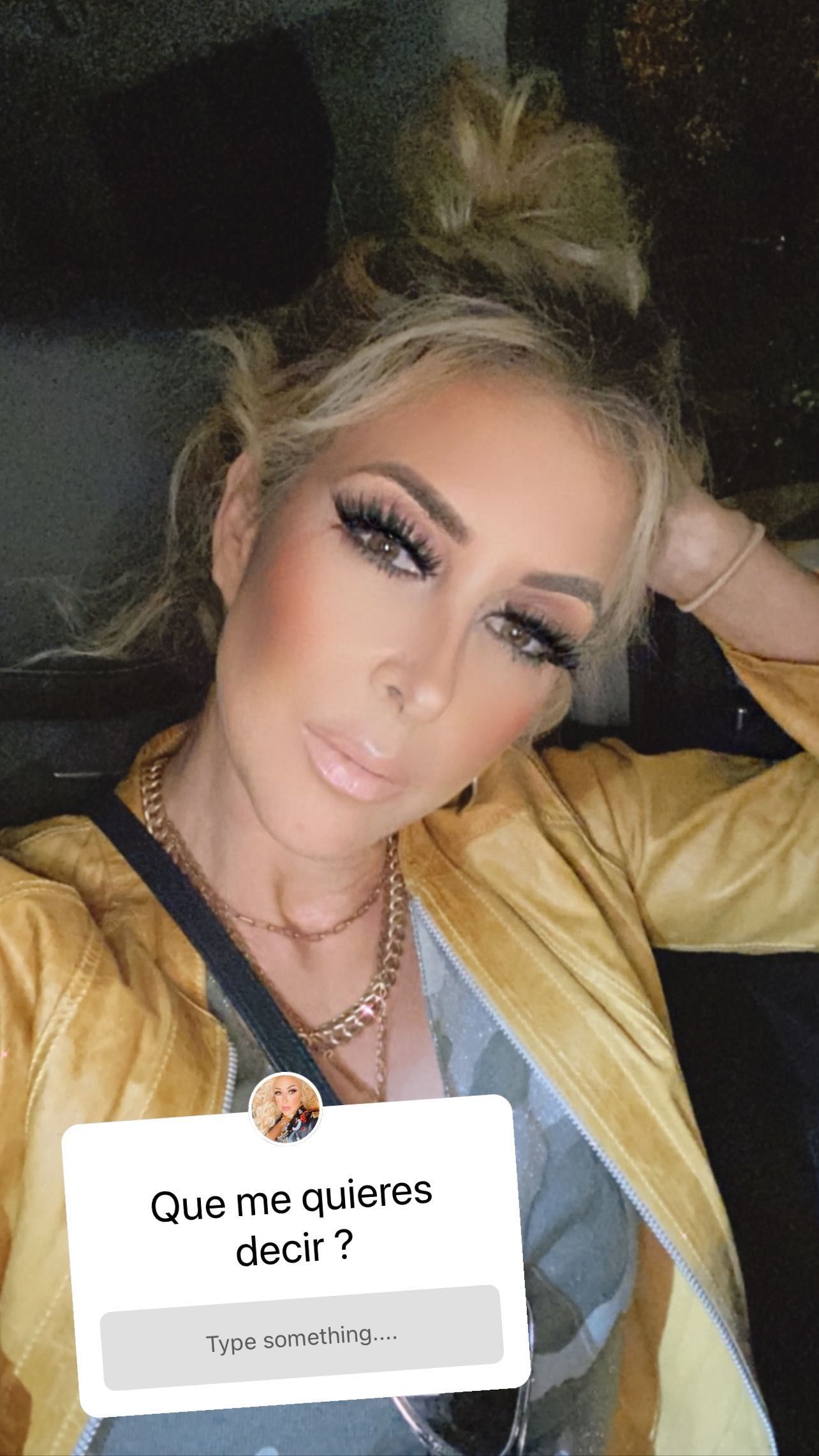 En dichas imágenes se puede ver que los años no pasan para ella ya que cada vez que aparece en alguna producción de fotos o videos su apariencia se lleva las miradas de todos. Esto marca que sin dudas, a su edad, es una de las mujeres más bellas del continente. Asimismo en esta oportunidad se la puede ver en primer plano y generar una pregunta a sus fans que dice "¿Qué me quieres decir?".
