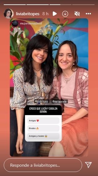 Además, en otra de las historias de su cuenta oficial de Instagram, la actual pareja del entrenador personal, Mariano Martínez, compartió un foto de ella junto a la actriz María Panella Gómez que interpretará a Casilda. Es por eso que Livia consultó a sus fans con la siguiente pregunta: "Crees que Lucía y Casilda serán amigas, rivales o amigas y rivales".