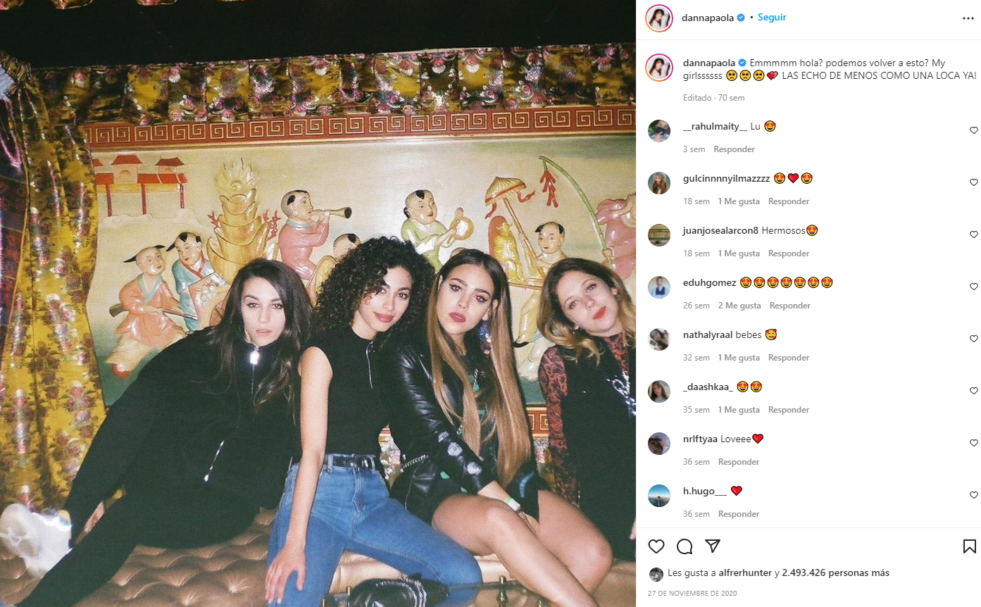 En dicha publicación, Danna escribió: "Emmmmm ¿Hola? ¿Podemos volver a esto? My girlsssss. ¡LAS ECHO DE MENOS, COMO UNA LOCA!”. Sin embargo, esto no sería todo. En los últimos meses se estuvo hablando mucho sobre la relación que tienen todos los protagonistas de Élite.