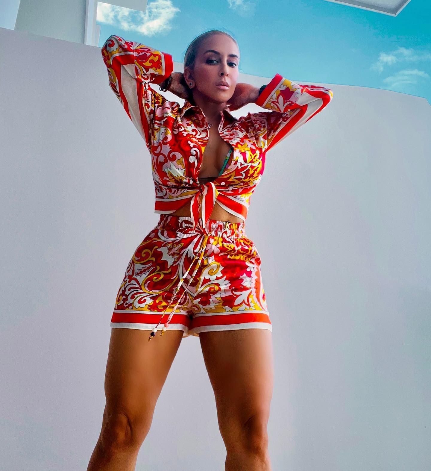 Esta vez no fue la excepción ya que hace recientemente compartió una serie de fotos de ella que dejó en evidencia la gran figura que posee. Este reel de imágenes fue publicado en su perfil de su cuenta oficial de Instagram. En las mismas se la puede ver lucir un minishort y una blusa de los mismos colores que enaltecieron su hermosa silueta.