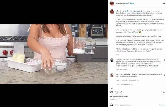 En la misma línea, Adamari López aprovechó para contarles a sus seguidores, que dicha receta pertenece a la marca que la acompaña en el cuidado de su figura. No solo eso, aclaró que, como no es una amante de la cocina, la pudo hacer de manera muy sencilla. El reto fue hornear un delicioso pastel de limón, siguiendo una de sus recetas preferidas que encontró en su app de WW.