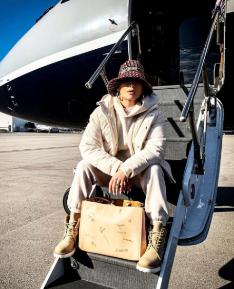 Jennifer Lopez también ha usado las clásicas sudaderas de Les Tien en múltiples ocasiones, adoptando su característico enfoque de chica genial con modelos con capucha y botas gruesas y toscas para completar.