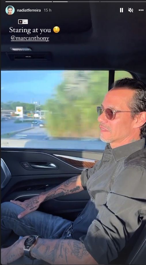 En las historias, Nadia Ferreira escribió: "Mirándote" y se ve a Marc Anthony sonriente, a la vez que mira por la ventanilla del vehículo mientras lo trasladaban en la parte trasera del coche. Esto indicaría que el cantante ya tuvo su alta médica y de a poco irá regresando a sus obligaciones laborales.