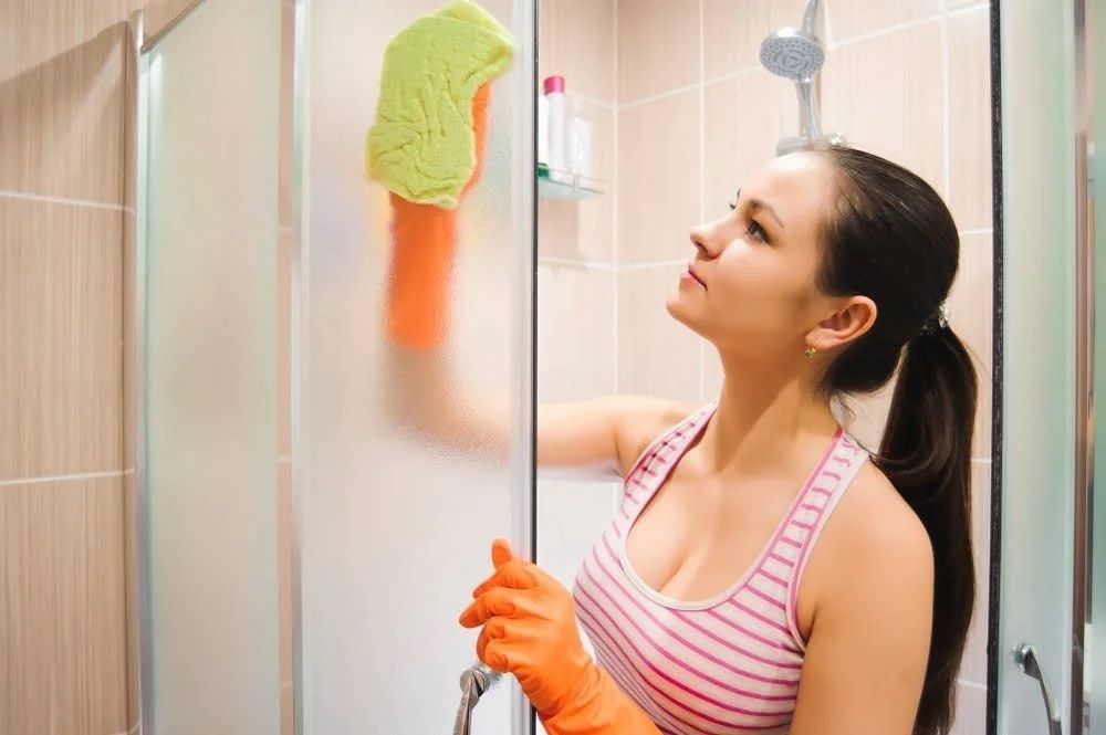 -Rocía la mezcla en las superficies del baño, incluyendo el lavabo, la ducha y el inodoro.