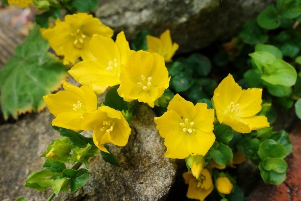 8. Creeping Jenny (Lysimachia nummularia): Es una cobertura del suelo que se propaga rápidamente, formando densas esteras que pueden sofocar a las rosas y competir por los recursos. Su hacinamiento y mayor retención de humedad aumentan el riesgo de enfermedades para las rosas, comprometiendo su salud y vitalidad.
