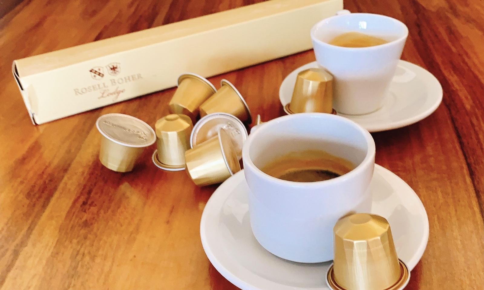 Asimismo en el marco del especial encuentro vivido se presentó un café de especialidad único en el mundo, añejado en barricas de primer uso con Malbec, envasado en cápsulas (compatibles con máquinas Nespresso) por Kapselmaker para Rosell Boher Lodge. El proceso implica el secado con la nueva máquina desarrollada en conjunto con INTI, la fermentación de los granos en barricas de roble utilizados previamente durante 12 meses para el vino Casa Boher Malbec, y posteriormente tostado, molido y envasado. El estacionado en barrica tiene cortes de 30, 60 y 90 días; con un máximo de 9 meses.
