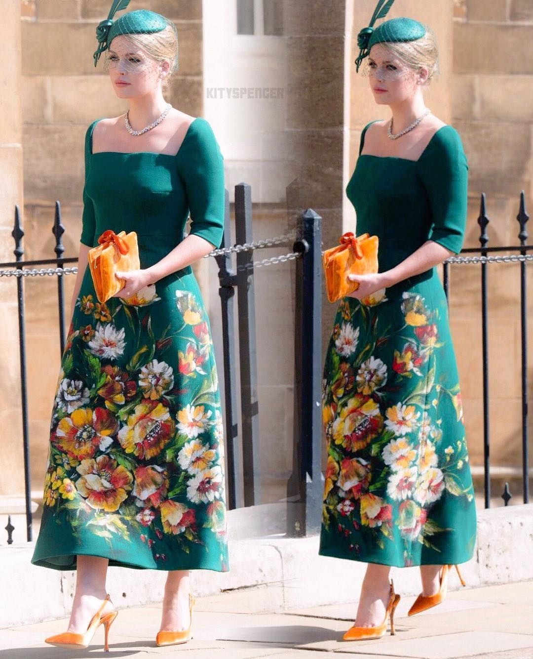 Su nombre volvió a aparecer en la prensa con el casamiento de su primo Harry con Meghan Markle. Ella llamó la atención de todos los medios y fotógrafos entre todos los invitados de la aristocracia a la boda. Llevaba un vestido verde con flores pintadas de Dolce & Gabbana con un tocado de redecilla y sobre y zapatos color naranja.