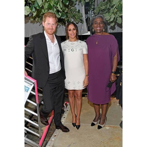 Meghan y Harry subieron al escenario y fueron aplaudidos por la multitud. Para la ocasión la duquesa optó por un mini vestido recto de Valentino. En color marfil, con apliques de flores en la parte superior y en la zona inferior de la falda. Lo combinó con zapatos y bolso en color negro, una dupla que nunca falla. El detalle de la cartera: era el modelo de Dior Lady D- Lite, el bolso icónico de la maison francesa en homenaje de Diana Spencer.