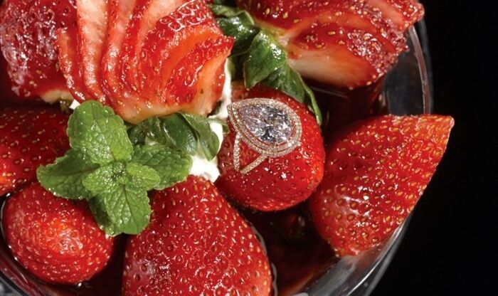 Es un delicioso postre de fresas que lleva un diamante de 7.09 quilates color rosa, llevan un adobo de oporto, vino rojo, especies, cítricos y helado de vainilla.