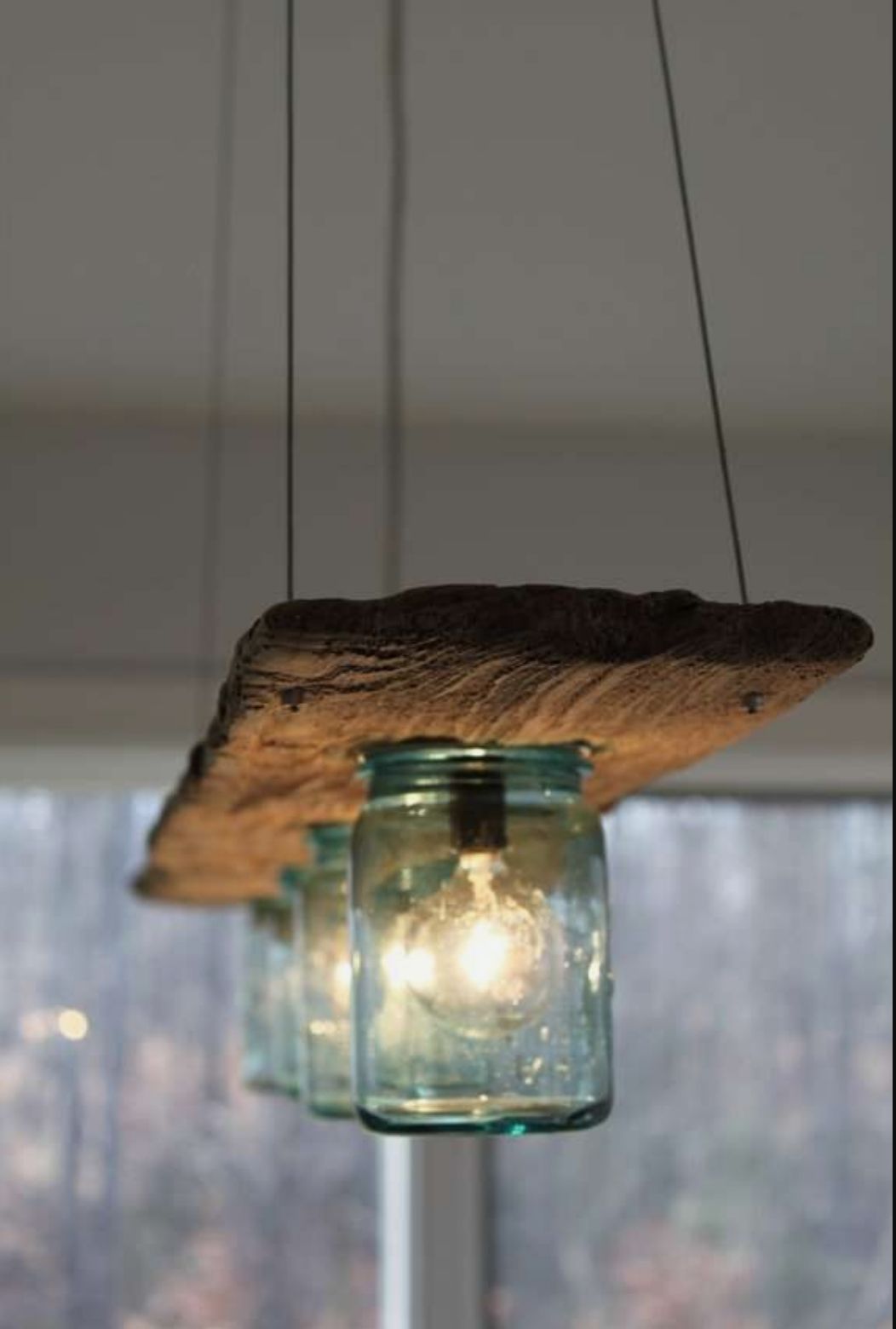 Lámpara colgante con tabla y frascos