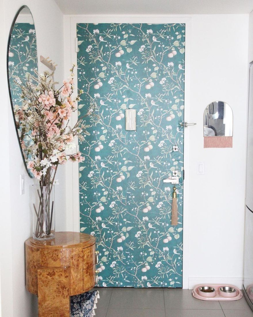 Otra manera de tener un espacio divertido y darle un toque diferente sin sobrecargar el ambiente, es empapelar con un vinilo adhesivo, pintar una de las paredes o la puerta de entrada. Esto es menos agresivo que pintar todo el departamento de un solo color y además se puede decorar con almohadones o sillas del mismo color.