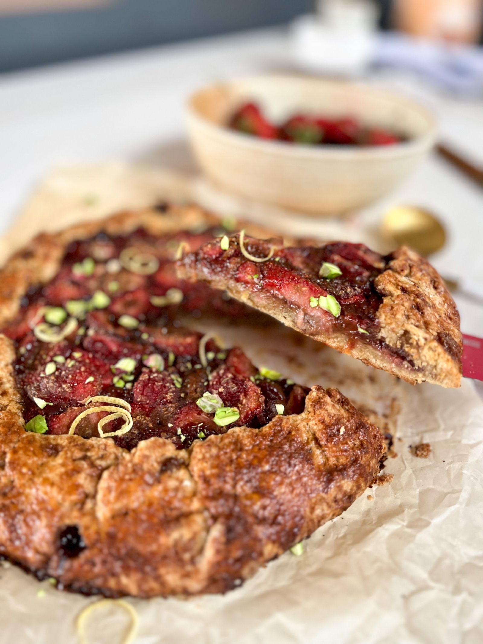 Su estética rústica enamora por su simpleza y el aroma a frutillas horneadas perfuma nuestra cocina prometiendo una tarta llena de sabor y el amor inigualable de lo hecho con nuestras propias manos.