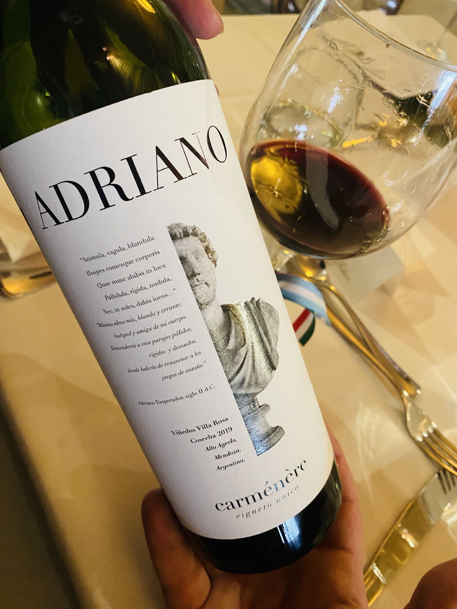 Varios fueron los vinos que se descorcharon, pero el que se llevó los aplausos fue el Carmenere Adriano, un vino que Senetiner no vende y solo comparte con algunos amigos. "Siempre me atreví a la innovación, jamás dejé de valorar la tradición. En homenaje a la variedad, vinifico está única parcela que es de esta tierra donde estamos ahora, de Alto Agrelo, y la embotello en cuarto menguante, ritual que reservo para mis mejores vinos. El resultado es un vino brioso, intenso, elegante y confío que de larga vejez. Cualquier similitud con mi personalidad es mera coincidencia. Éste vino es mi legado: Ecco qui il mio lavoro", explica el ya mítico hacedor de vinos Adriano Senetiner a la hora de caracterizar a este elixir que todos ponderaron.