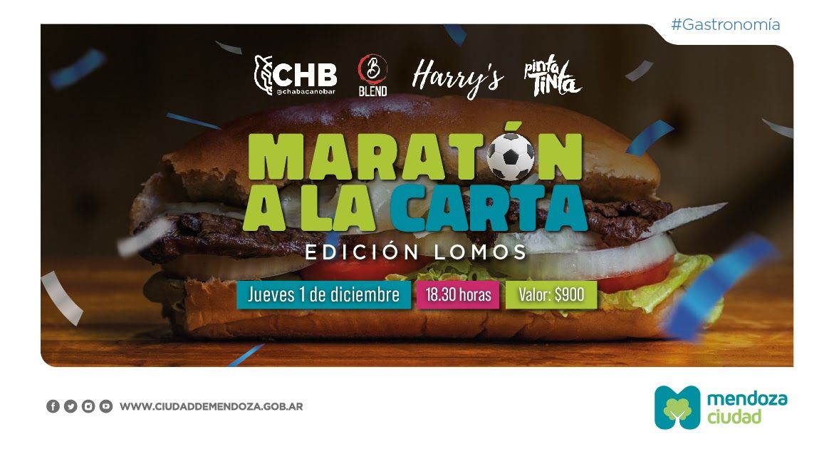 El jueves 1 llega una nueva edición de la Maratón a la Carta y lo hace con el especial más esperado por todos: “Lomos”. De esta manera, vecinos y turistas arrancarán el último mes del 2022 disfrutando de la mejor gastronomía de la capital mendocina.